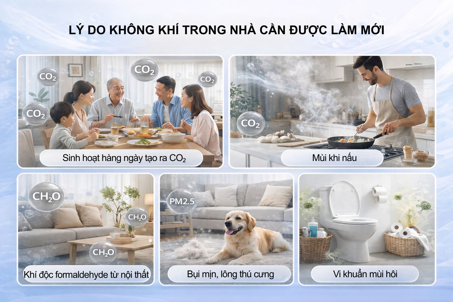 • Không khí trong toàn bộ không gian được làm mới liên tục