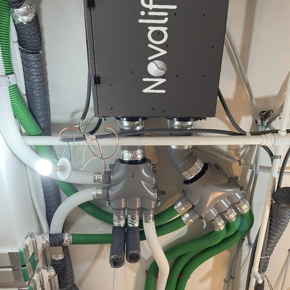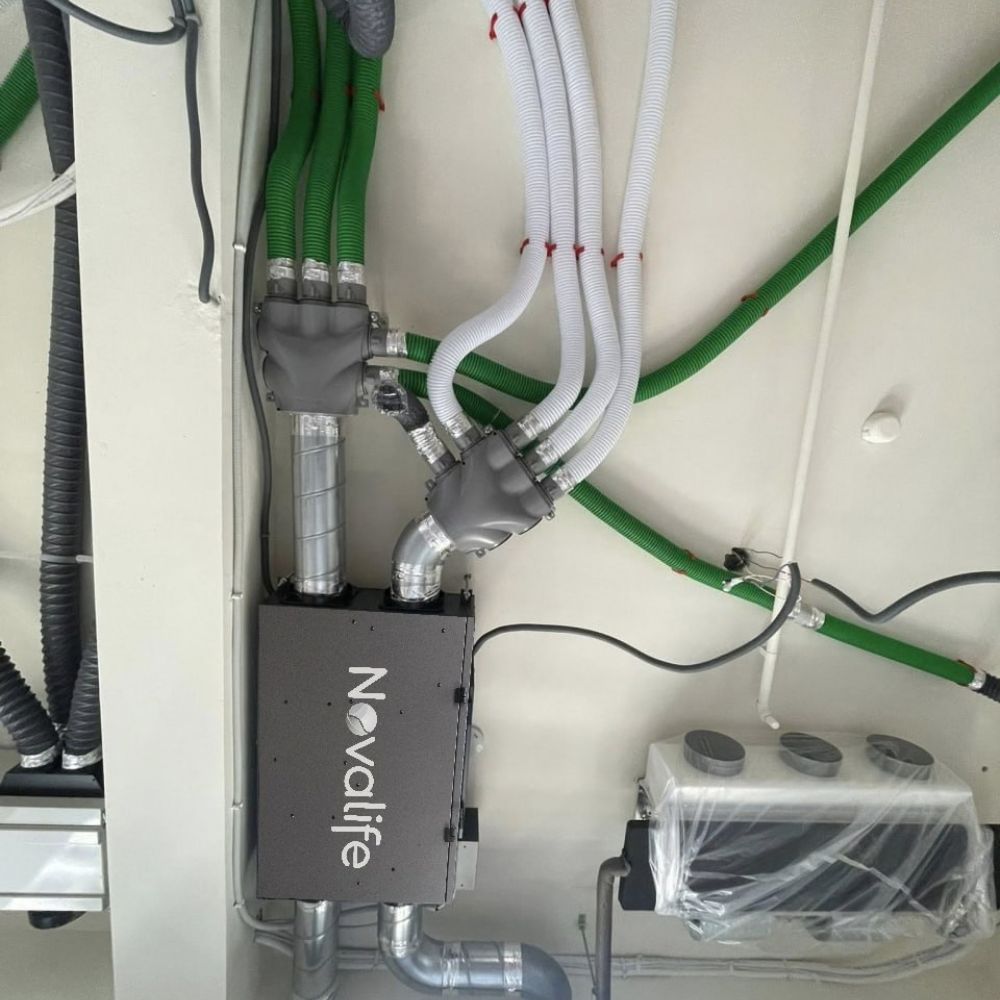 Novalife KMC 178 m³/h mang đến giải pháp không khí toàn diện cho không gian sống hiện đại. Hệ thống vận hành liên tục, giúp loại bỏ không khí cũ và giảm nồng độ CO₂ tích tụ, đồng thời bổ sung luồng không khí trong lành, giàu oxy, duy trì không gian luôn tươi mát, dễ chịu và cân bằng.