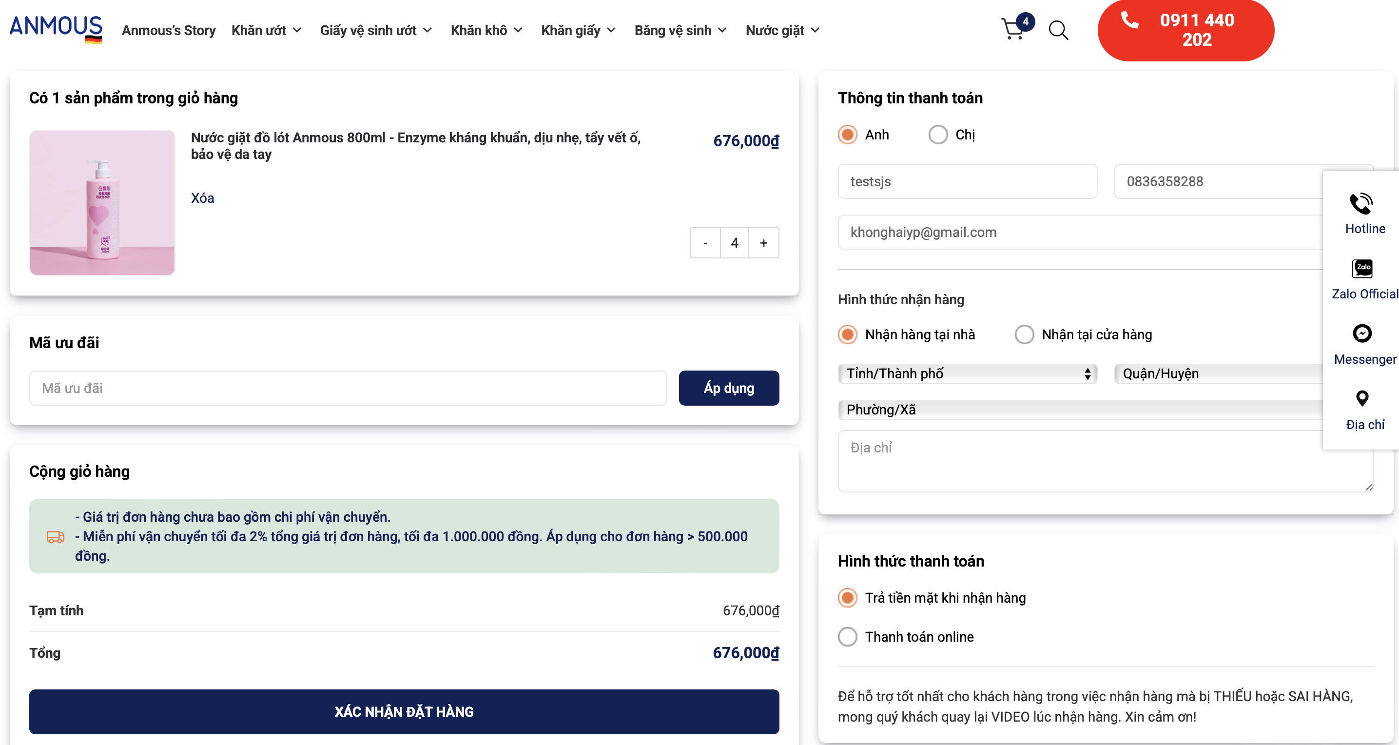 Bước 5: Xác nhận và gửi đơn hàng